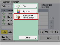 Según el entorno de red, es posible que tenga que configurar previamente los servidores LDAP. Para más información acerca de la configuración de servidores LDAP, consulte "Guardar un servidor LDAP".