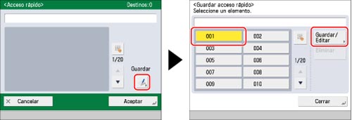 Para cancelar un destino especificado, seleccione de nuevo el destino que desea guardar.