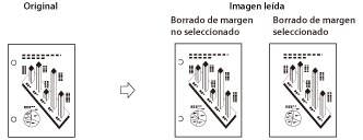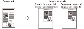 Este modo elimina los bordes oscuros y las líneas que aparecen alrededor de la imagen leída si el original es de un tamaño inferior al tamaño de papel especificado. También puede utilizar este modo para crear un borde en blanco alrededor de la imagen leída.