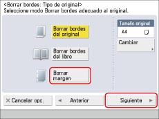 Puede establecer el modo Borrar bordes del original únicamente con los tamaños de papel del original que aparecen en la pantalla táctil.