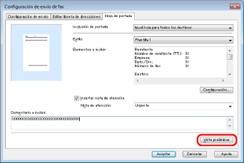 Haga clic en [Vista preliminar] si desea ver la imagen de vista preliminar en la portada.