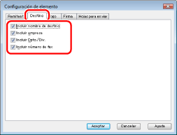 Si quiere incluir en la portada el número de hojas que va a enviar, seleccione [Incluir número de hojas a enviar] en la hoja [Hojas para enviar] → seleccione [Incluir número de hojas a enviar] → especifique el número de hojas.
