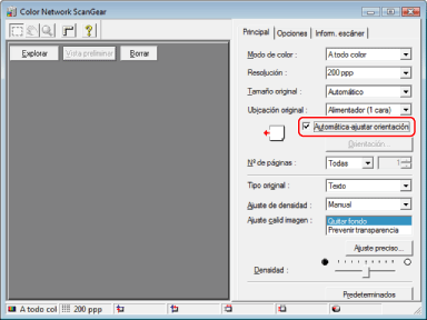 Mientras lee desde el alimentador, puede establecer que Network ScanGear muestre el documento con la orientación correcta en el monitor del ordenador.