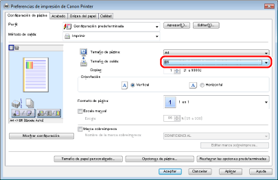 Seleccione el tamaño de página del documento que haya creado en la aplicación en [Tamaño de página].