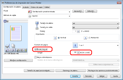 Según el tamaño de página seleccionado y el modelo de impresora que utilice, es posible que no pueda ampliar el documento.