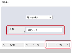 选择步骤2中注册的办公室B的传真号码→按[确定]→[下一步]。