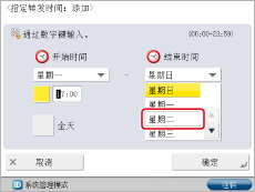 按<结束时间>下拉列表→选择[星期二]。