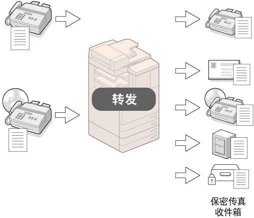 可以设置本机将已接收传真自动转发到另一个接收方。例如,可以设置本机将在另一个位置工作的员工的传真自动转发到适当位置。