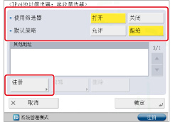 <使用筛选器>按[打开]→<默认策略>按[拒绝]→按[注册]。