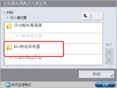 MAC地址是网络机器的唯一识别码。即使IP地址更改MAC地址也不会更改。除IP地址外,还可以为MAC地址设置“发送筛选器”和“接收筛选器”。按照以下步骤设置MAC地址筛选器。