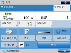 如果[部门识别码管理]的[部门识别码管理]或[限制功能]设置为“打开”,启动屏幕可能与[启动时的默认屏幕]有所不同。