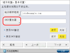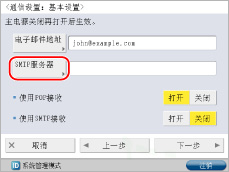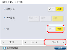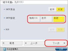 <使用POP接收>按[关闭]→<使用SMTP接收>按[打开]→[下一步]。