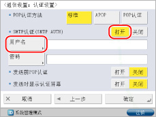 <SMTP认证(SMTP AUTH)>按[打开]→[用户名]。