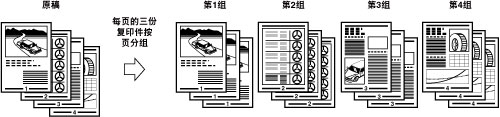 打印一份原稿的多份复印件时,可以将输出件分套为单独的复印件。