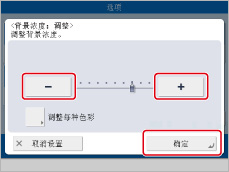 为<背景浓度>按[调整]并进行微调会取消<背景浓度>的[自动]设置。同样地,如果在手动调整后为浓度按[自动],则会取消所做的调整。本机会自动将浓度调整到适合背景的水平。