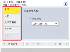 在[自定义]中输入的文本不会自动保存。如果要注册新创建的安全水印,以便可以随时选择,按[注册]→输入要注册的文本。
