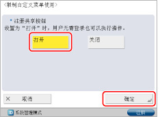 如果仅设置了“系统管理员设置”并且未使用认证模式,则按[限制自定义菜单使用]时显示登录屏幕。输入“系统管理员识别码”和“系统PIN”。“系统管理员识别码”和“系统PIN”的默认设置为“7654321”。 (See "指定系统管理员设置.")