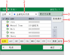 如果按[更改地址簿],可以将显示切换为[本地]、[远程]或[LDAP服务器]地址簿。