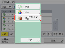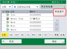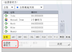 如果要选择多个接收方,选择接收方“地址列表”→按[确定]。如果[管理地址簿存取号]设置为“打开”,按[存取号]。