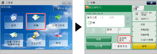 (数字键)输入接收方的传真号码→在呼叫收到应答并且听到传真信息服务的录音信息时,按[音频]。
