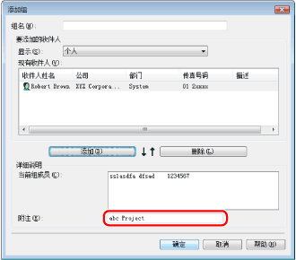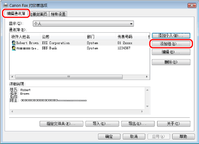 也可以编辑之前注册的组收件人信息。有关详细信息,请单击传真驱动程序窗口右下角的[帮助]查看联机帮助。