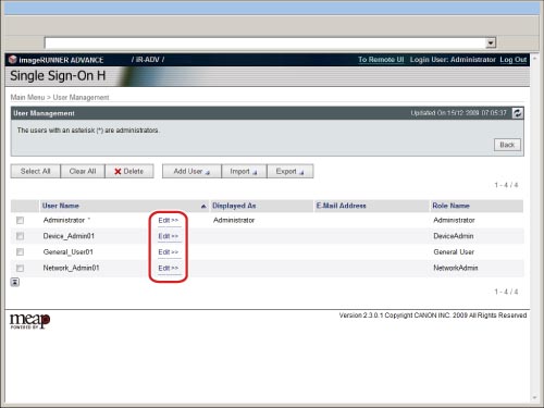 只有Local Device Authentication管理员才可以在[User Management](用户管理)页面上注册/编辑用户数据。普通用户只能更改自己的密码。
