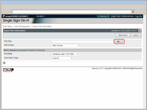 导入以SDL和SSO-H的Local Device Authentication使用的文件格式创建的用户数据。(文件扩展名:“ldif”)