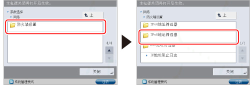 按[网络]的[防火墙设置]→按[IPv6地址筛选器]。
