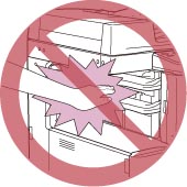 由于复印/打印期间分页装订处理器的托盘移动,因此切勿将任何物品放置在这些托盘的下面,否则可能会损坏这些托盘。