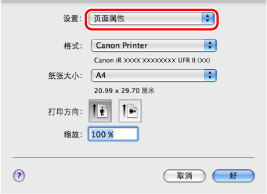 在Mac OS X 10.5.x中,根据应用程序,[页面设置]对话框会有所不同。