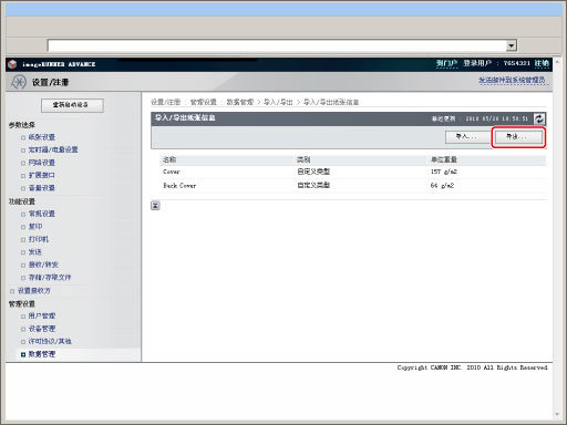 保存的设备设置的文件扩展名根据机器的型号不同而有所差异。可导出的设置也会根据文件扩展名不同而有所差异。