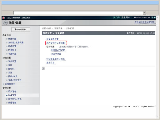 单击[设置/注册]→为<管理设置>选择[设备管理]。