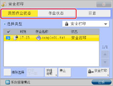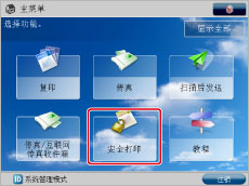可以使用“设置/注册”的[参数选择]中的[启动时的默认屏幕]将“安全打印”屏幕设置为初始屏幕(打开主电源时或执行“自动清除”后显示的屏幕)。(See "启动时的默认屏幕.")