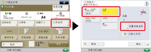 如果将[将PDF格式更改为PDF/A]设置为“打开”,则不能设置Reader Extensions。 (请参阅“将PDF格式更改为PDF/A”)