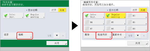 按[编辑]→选择要检查设置的按钮→按[检查内容]。