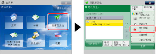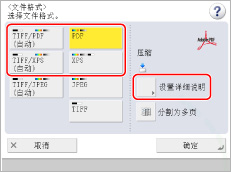 如果选择PDF(OCR)或XPS(OCR)作为文件格式,则只能以[1:1(100%)]或[自动]的缩放倍率发送。