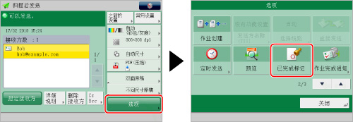 将原稿放置在输稿器中。已完成标记应用于从输稿器扫描的原稿。