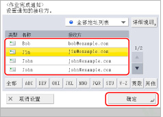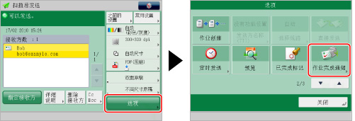 选择作业完成通知的接收方→按[确定]→[关闭]。