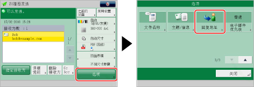 发送电子邮件或互联网传真时,可以指定回复接收方。
