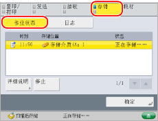 取消所选的作业。选择了一项作业时,会显示[停止]。按[停止]→[是]取消作业。