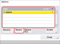 选择[Name](名称)或[Order](顺序),按升序或降序对URL历史记录列表进行排序。