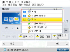 4단계를 반복하여 [스캔하여 저장]을 <2> 위치로 옮기고, [팩스]를 <3> 위치로 옮깁니다.