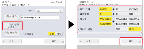 I-팩스 주소에 수신인의 이메일 주소를 입력하려면 아래의 절차를 따릅니다.