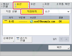 [송신] → [작업 이력]을 누릅니다.