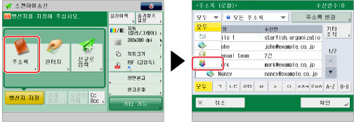 주소록에 있는 여러 이메일 주소를 포함하는 그룹을 등록하면 해당 그룹을 수신인으로 선택하여 해당 그룹에 포함된 모든 이메일 주소로 송신할 수 있습니다.