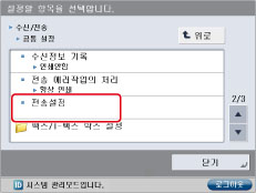전송 설정 화면이 나타날 때까지 계속 [확인]을 누릅니다.