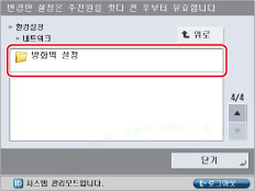 [환경 설정] → [네트워크] → [방화벽 설정]을 누릅니다.
