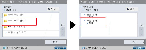 [IPv6 주소 필터] → [수신 필터]를 누릅니다.