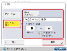 프리픽스 주소를 입력하고 → [확인]을 누릅니다.