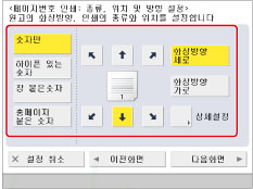 단면 문서를 용지의 양면에 복사하고 페이지 번호를 추가하기 위한 설정 등록